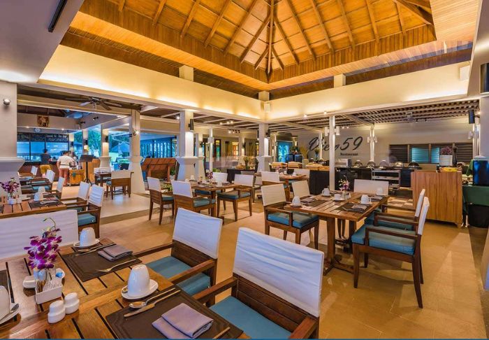 Hotellets hyggelige restaurant serverer udsøgte retter, der spænder fra alt mellem thailandske delikatesser til internationale favoritter.