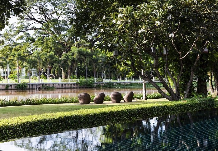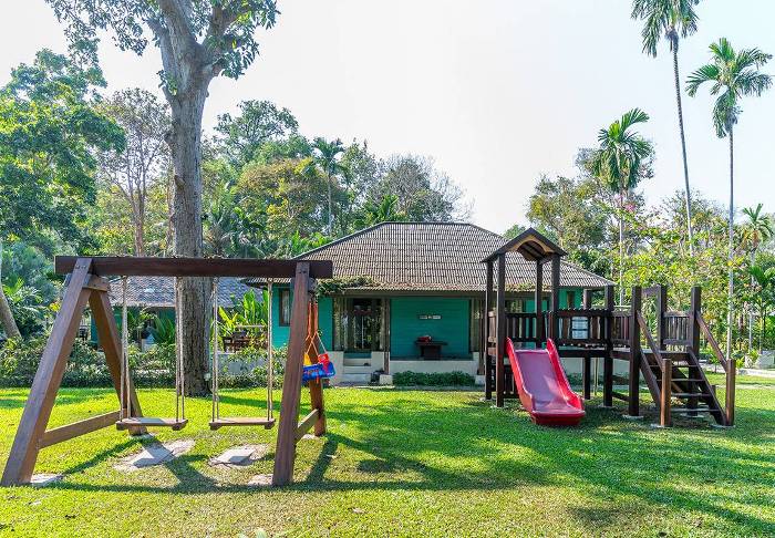 Resortet er bygget i traditionel Lanna-stil og i fin harmoni med omgivelserne. Bygningerne er spredt udover den store grund, der består af skyggefulde stier, lotusdamme, blomsterhaver og en stor græsplæne med liggestole, hvor du kan slappe af og nyde udsigten over floden.