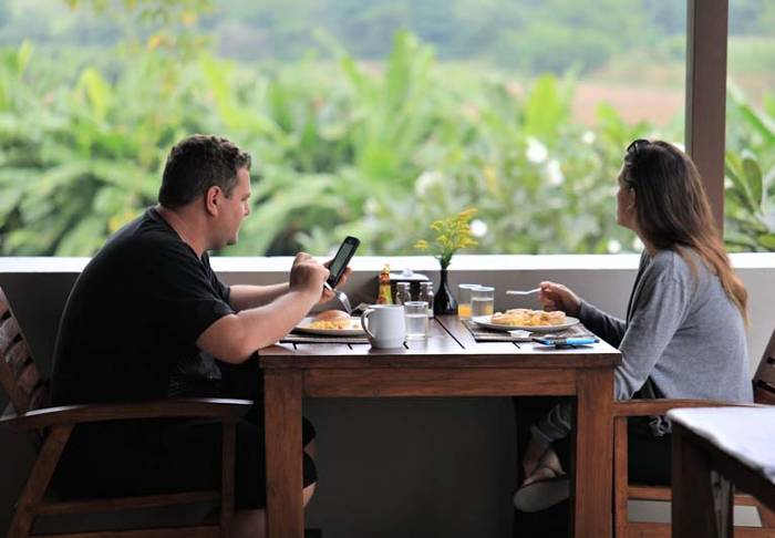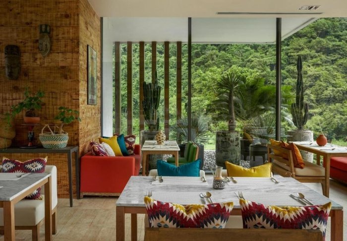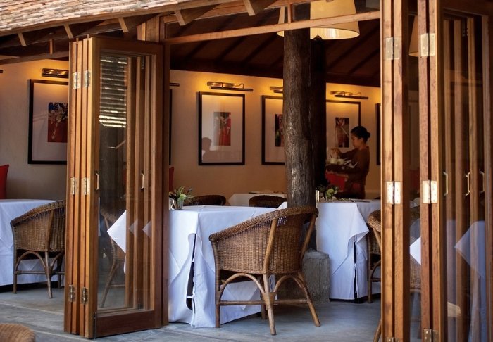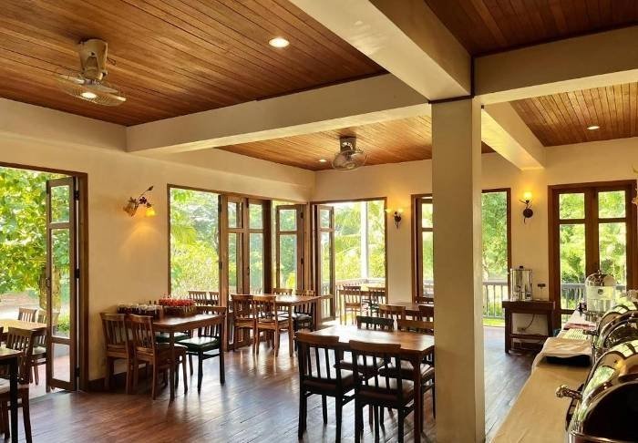 Resortet har egen restaurant, og her serveres lokale retter tilberedt med friske råvarer fra området, som du kan nyde med udsigt over floden.
