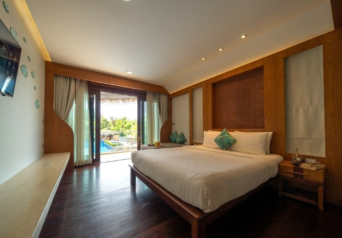 Stå op til lyden af havet, mens du er vidne til, at solen står op over øen. Nyd en kop kaffe på din veranda og spis en god morgenmad. Herefter kan du nyde dagen ved den private strand og den smukke udsigt over Andamanhavet fra din solvogn eller tage en forfriskende dukkert i swimmingpoolen.