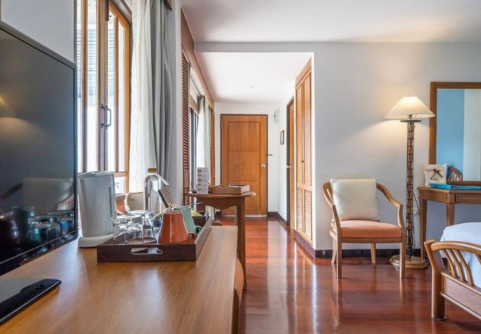 Det lille charmerende boutiquehotel formår at forene traditionel thailandsk arkitektur med moderne luksus og komfort på bedste vis. Det samme vil du opleve på hotellets elegante værelser, som er indrettet med sans for detaljer i klassisk thailandsk stil. Alle værelser byder på aircondition, wi-fi, tv, kaffe- og te faciliteter samt privat badeværelse udstyret med regnbruser og diverse gratis toiletartikler.