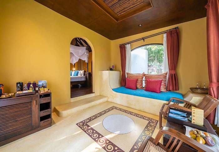 Resortet har 50 rummelige værelser der er traditionelt indrettet. Alle værelser er udstyret med gratis wi-fi, aircondition, sikkerhedsboks, minibar, kaffe- og tefaciliteter, strygejern- og bræt, TV, telefon, skrivebord, hårtørrer samt badeværelse med separat bad og brus. Fra balkonen er der udsigt til den tropiske have.