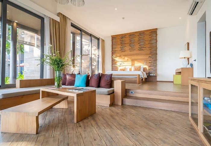 Hotellet består af flere bygninger beliggende i frodige omgivelser med velfriseret haver og høje palmer, der vajer i den lette brise. Resortets 116 værelser er designet til at give dig en privat og fredfyldt base. De er alle lyse og har en moderne indretning, der harmonerer perfekt med naturen udenfor. Fra den møblerede terrasse har du udsigt til den frodige have, som omfavner resortet, og du kan nyde en afslappet morgenkaffe eller en stille stund. Samtlige værelser tilbyder alle moderne bekvemmeligheder som wi-fi, aircondition, værdiboks, minibar, kaffemaskine og mineralvand på flaske. Badeværelset er en oplevelse i sig selv, udstyret med både badekar og en regnbruser samt toiletartikler, hårtørrer og badekåbe.