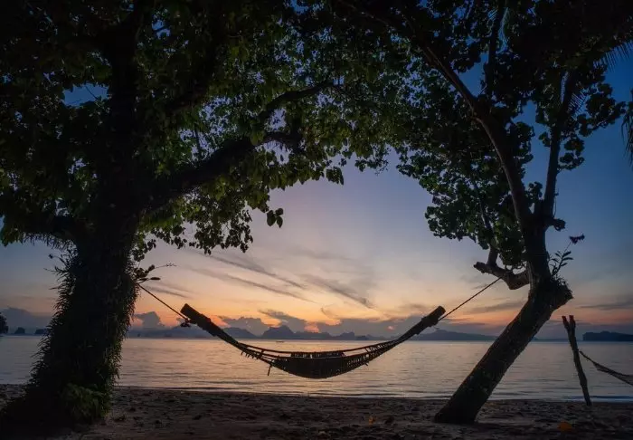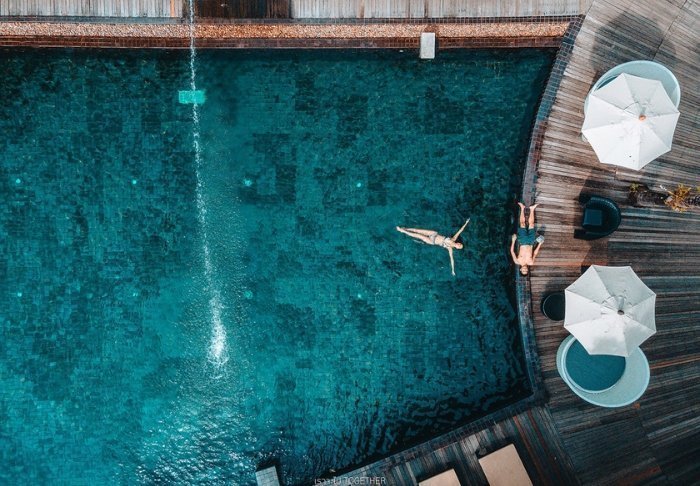 Solen er ved at gå ned. Inden du klæder om til middagen hopper du lige i ”rooftop”-poolen for sidste gang i dag. Herfra kan du ane solen, som er ved at gå ned i Andamanhavet. Himlen er rød-lilla og cikaderne synger omkring dig.