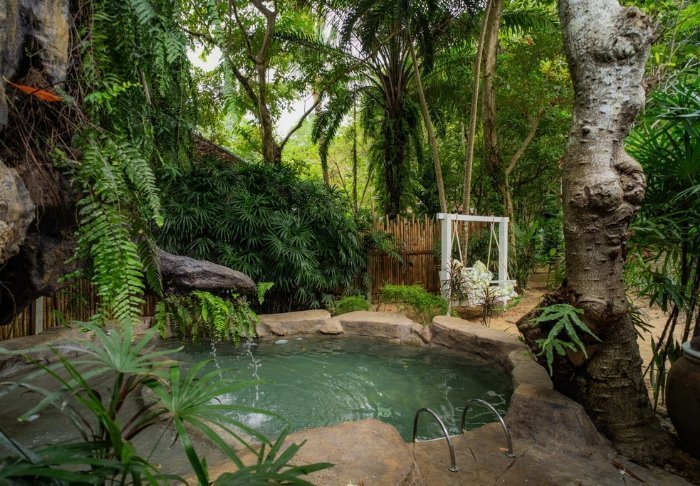 Som gæst på Hintok River Camp kan du efter en oplevelsesrig dag slappe af med en thailandsk massage eller i den naturlige pool, der ligger smukt ved floden.
