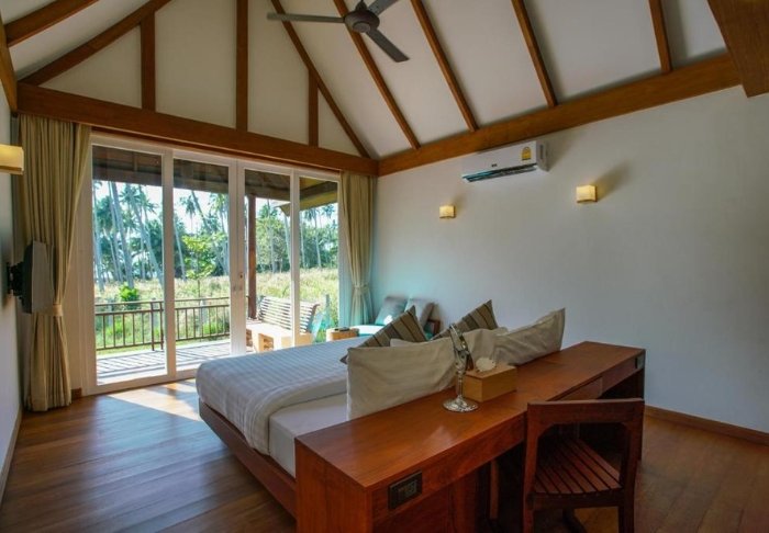 Resortet er omgivet af palmer og tropiske træer. Midt i de frodige haver står bungalows og den selvstændige hotelbygning med udsigt og adgang til poolen. Resortet har i alt 80 velindrettede værelser på min. 35 m2, som kombinerer elegance og thailandsk charme med naturmaterialer. Hvert værelse er indrettet med tanke på komfort og ro. Samtlige værelser er udstyret med wi-fi, aircondition, minibar, værdiboks, tv samt kaffe- og tefaciliteter. Fra den mindre sovesofa kan du kigge ud på de frodige haver. Hvert værelse har tilmed møbleret terrasse eller balkon, hvor du kan nyde omgivelserne og den tiltrængte ro. Badeværelset byder på både regnbruser og badekar samt hårtørrer og gratis toiletartikler.