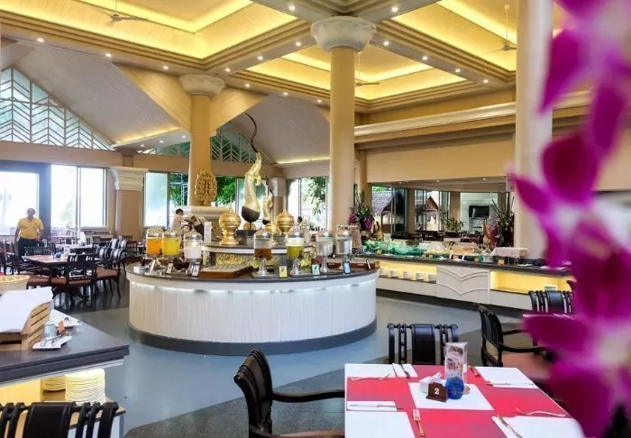 Når sulten melder sig, kan du besøge en af resortets 3 spisesteder, der alle ligger med udsigt over havet: Atrium Café, Beach Bar & Restaurant og Poolside Bar. Her serveres en variation af både asiatiske og internationale retter. Snyd ikke dig selv for en frisk drink lige netop her i strandkanten.