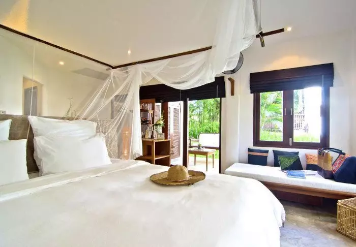 Der er i alt 76 værelser på min. 56 m2 og de er alle enkelt og lyst indrettet. Samtlige værelser har wi-fi, aircondition, seng med myggenet, mineralvand på flaske, minibar, te/kaffe faciliteter, værdiboks, tv, telefon og skrivebord, mens du på badeværelset finder både badekåbe, slippers, hårtørrer og toiletartikler. Om morgenen kan du nyde en kop kaffe på den din private terrasse og nyde de fredelige omgivelser.
