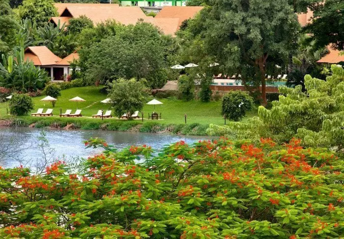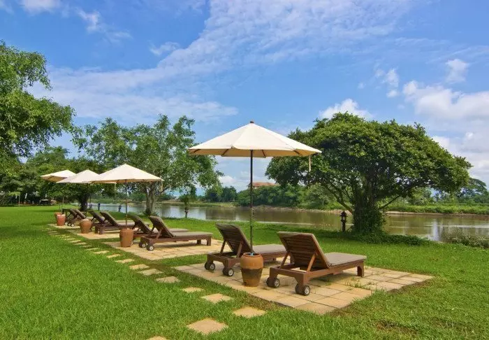 Resortet er bygget i traditionel Lanna-stil og i fin harmoni med omgivelserne. Bygningerne er spredt udover den store grund, der består af skyggefulde stier, lotusdamme, blomsterhaver og en stor græsplæne med liggestole, hvor du kan slappe af og nyde udsigten over floden.