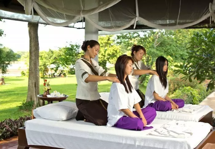Efter en dag med oplevelser kan du nå et dyp i infinity-poolen eller en traditionel thailandsk massage i det udendørs spaområde, Chiang Saen, inden middagen serveres.