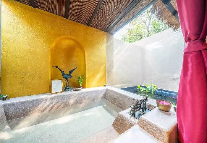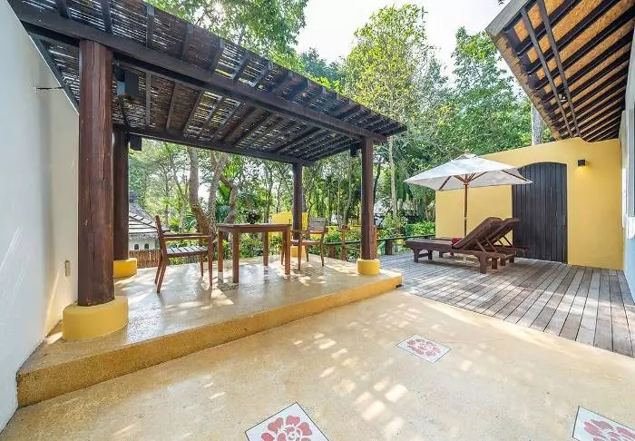 Resortet består af 40 villaer på 100 m2, der alle ligger spredt i de frodige omgivelser. Villaerne har stråtag med høje hvælvede lofter. Indvendigt er de alle malet i solgul og indrettet i balinesisk og marokkansk stil med thailandske designelementer som teaktræ, rattan og silke for at komplementere de smukke omgivelser. Hver villa er udstyret med wi-fi, aircondition, minibar, værdiboks, smart-TV samt elkedel, så du kan lave dig en kop kaffe eller te, der kan nydes på din terrasse eller sala, der har bord og stole. I villaen er der også paraply og lommelygte, og hver dag får du serveret frisk frugt – helt gratis. Badeværelset har udendørsbruser samt badekar, og her finder du også hårtørrer, badekåbe og tøfler.