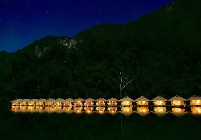 På Praiwan Raft House er der ingen Wi-Fi, og kun elektricitet i tidsrummet fra kl. 19.00 til 06.00 – nok til at oplade kamera og telefon, inden stilheden tager over. Til gengæld får du junglens lyde, vinduer der kan åbnes og skaber gennemtræk, lækker hjemmelavet mad og en nattehimmel, der lyser op uden kunstigt lys.