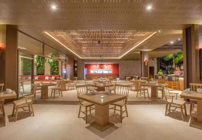 Start dagen med en lækker amerikansk morgenmadsbuffet på The Kitchen, og besøg Sassi’s Beach Club for thailandske og internationale retter med udsigt til havet. Kig forbi The Mellow Bean for panini-sandwiches, en kop kaffe og lækre kager. Trænger du til at køle ned i varmen, kan du nyde en eksotisk cocktail i swim-up-baren, mens solen går ned i horisonten,