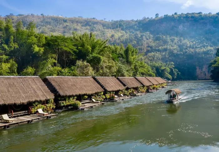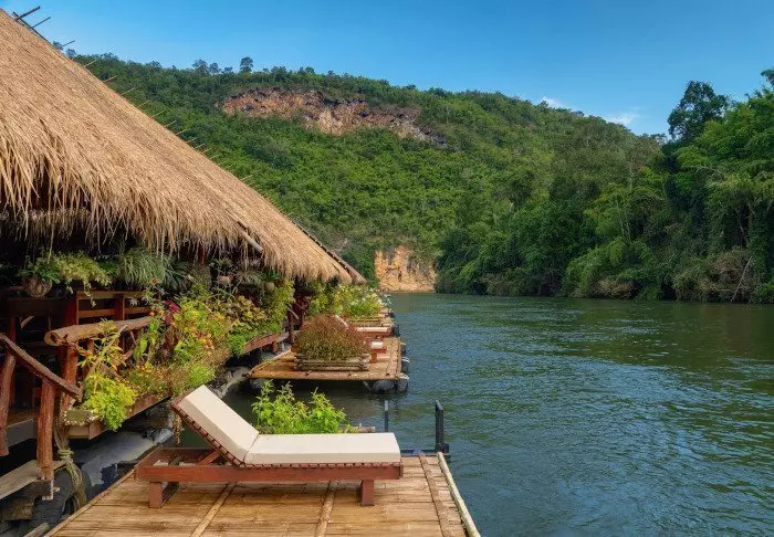 Det unikke River Kwai Jungle Rafts er et flotel – et hotel bygget på en tømmerflåde – der flytter på din opfattelse af luksus. Flotellet ligger fast forankret på floden Kwai med en gangbro ind til bredden.