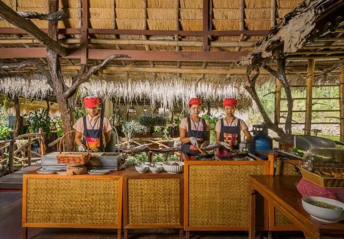 I baglandet i kort afstand fra flotellet ligger en etnisk Mon-landsby, som du kan besøge. Mon-folket stammer oprindelig fra Myanmar, og du har mulighed for at opleve deres kultur og traditioner tæt på. Mange mon-mænd arbejder som mahout’er, og derfor finder du også elefanter i landsbyen.