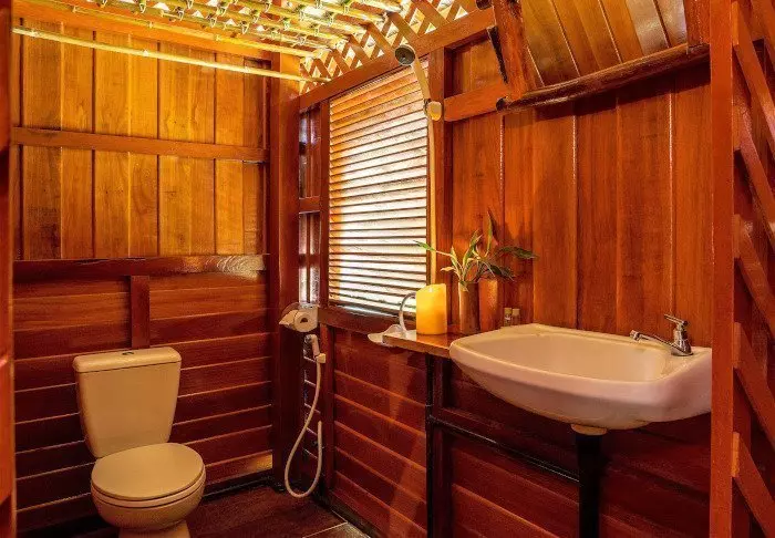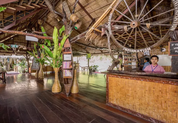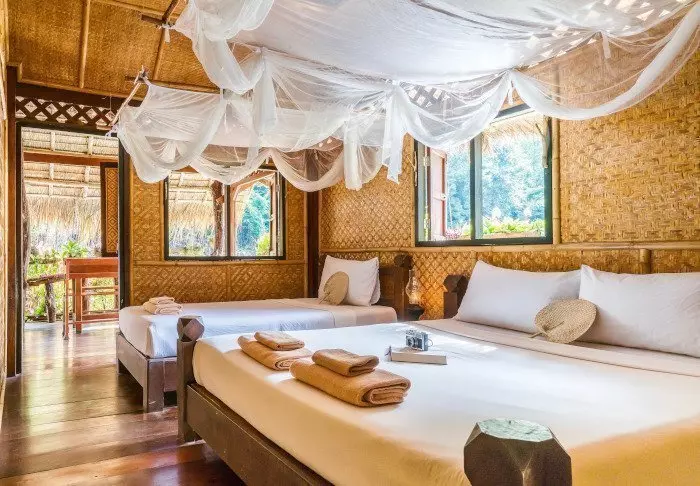 Flotellet har to sektioner med i alt 100 bambushytter. Værelserne er enkelt indrettet med komfortable senge og myggenet, håndholdt vifte, lommelygte, make- up bord, mineralvand på flaske samt redningsvest. Værelserne har ingen elektricitet og derfor heller ingen minibar eller wi-fi. På din private veranda kan du slappe af i en hængekøje, mens du nyder udsigten over den stille flod med kæmpestore bambus på bredden og vilde orkidéer i træernes grene. Du kan også tage en forfriskende dukkert direkte fra verandaen eller sejle i kano. Hvert værelse har desuden eget badeværelse med toilet, toiletartikler og koldt vand i bruseren.