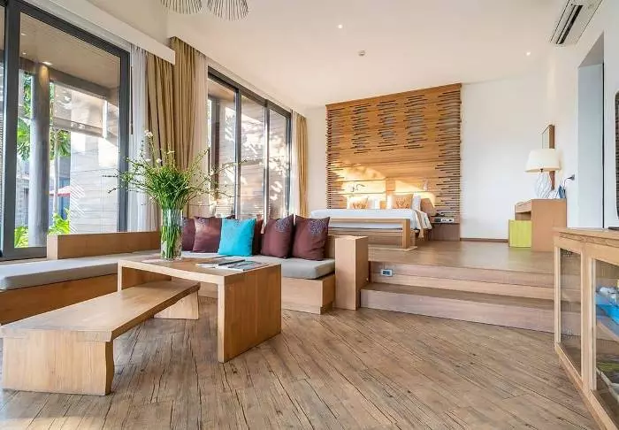 Resortet byder på et udvalg af elegantindrettede værelser og bungalows med egen balkon, hvorfra du kan nyde den betagende udsigt til de frodige, tropiske haver eller havet. Du bor som standard i et Premium-værelse på 45 kvm. Værelset har et dejligt opholdsrum og kombinerer bløde farver og naturlige materialer med moderne møblement for at sikre god komfort og nutidigt design. Det er desuden udstyret med aircondition, wi-fi, te- og kaffefaciliteter og værdiboks. Det rummelige badeværelse har moderne håndvask og regnbruser samt hårtørrer, toiletartikler, badekåbe og slippers.
