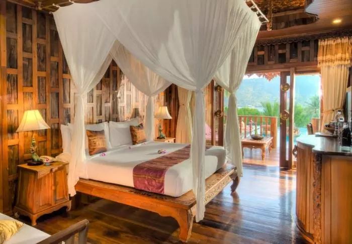 Heller ikke på resortets 99 værelser er der tvivl om, at man er i Thailand. Teaktræ med udskæringer går igen i møblement og vægbeklædning og fortsætter ud på den hyggelige veranda. Fælles for alle værelser er, at de har både wi-fi, aircondition, minibar, værdiboks, kaffe og tefaciliteter og gratis mineralvand på flaske. Badeværelserne er udstyret med både bruser og badekar, hårtørrer, badekåbe, slippers og toiletartikler.