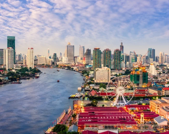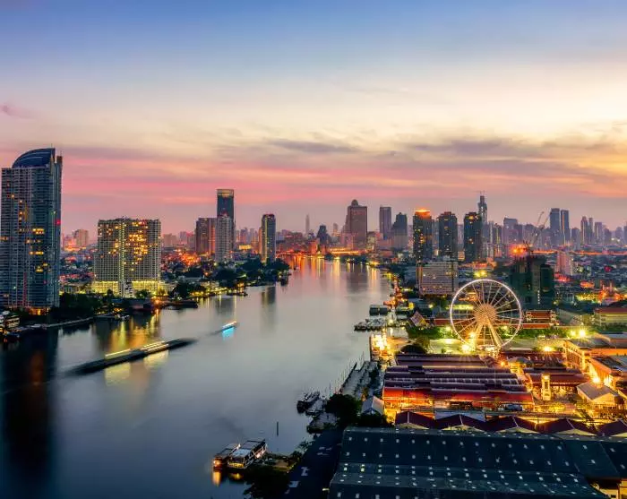 Her vil du opleve oplyste storcentre og arkitekttegnede skyskrabere, der ligger side om side med små butikker og funklende templer; duften fra de mange gadekøkkener, der blander sig med osen fra den tætte trafik, der samtidig langsomt overhales af kanalernes mange både; og orangeklædte munke der zigzagger sig ind og ud mellem travle forretningsfolk, skolebørn og turister i byens gader.