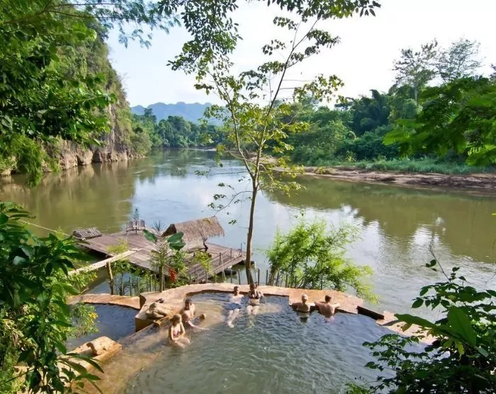 Du vender hernæst retur til River Kwai Jungle Rafts, som er et flotel eller tømmerflådehotel på selve floden Kwai. Landskabet og frodigheden er ubeskrivelig! Ved ankomst er der check-in og frokosten serveres.