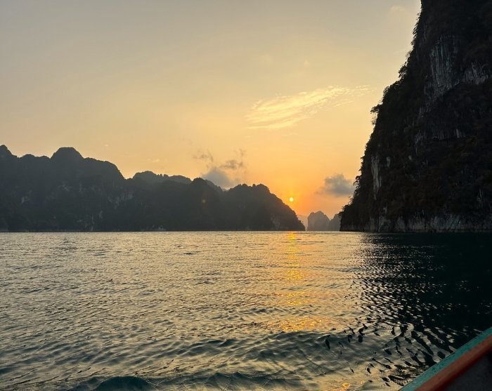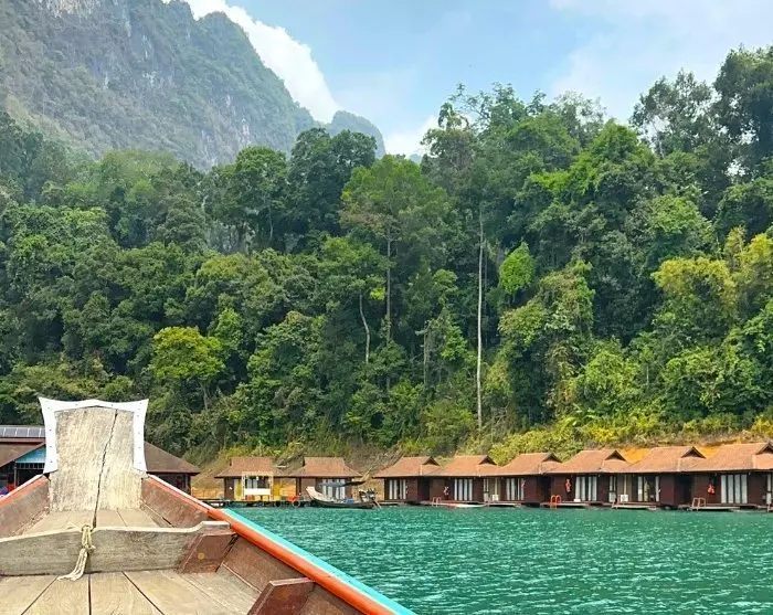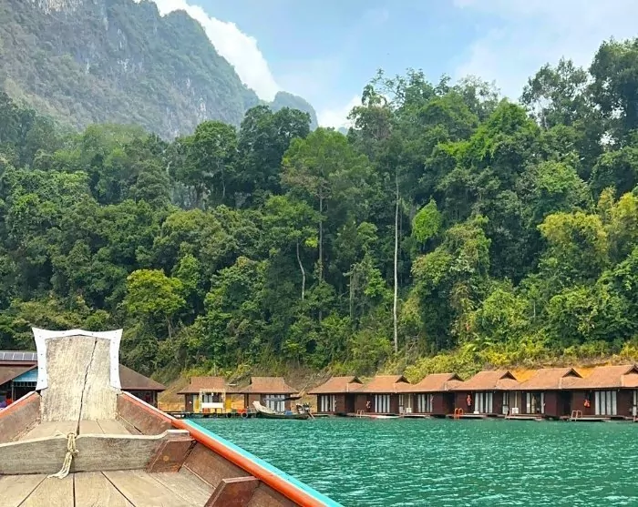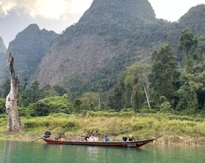 Herefter bliver du kørt til Ratchabrapa-molen tæt ved den imponerende dæmning. Her stiger du ombord i en piskerisbåd og bliver sejlet ud på Cheow Lan-søen, hvor du kan nyde det majestætiske landskab med ikoniske kalkstensklipper.