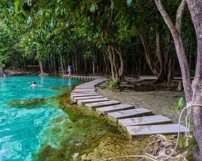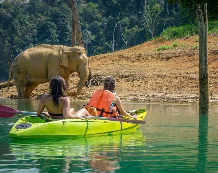 Køreturen fra Surat Thani lufthavn til dit hotel tager ca. 1 time og 40 min. Ved ankomst til dit overnatningssted venter en rolig kanotur på Sok-floden. Det er en skøn oplevelse at glide stille afsted på floden, mens du suger indtryk til dig fra den omkringliggende regnskov. Nyd synet af de dramatiske kalkstensklipper og den frodige natur. I trætoppene kan du høre fugle synge, mens du tæt på flodbredden måske får et glimt af en leguan. Det bedste af det hele er, at du blot kan læne dig tilbage og nyde det hele, mens din lokale guide padler for dig.