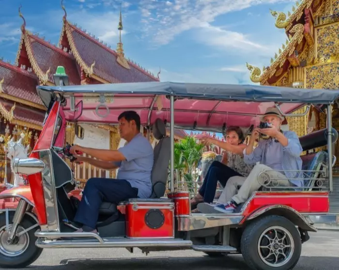 Når du skal rundt i Bangkok, behøver du ikke bekymre dig om den berygtede trafik, da byen har et godt udbud af forskellige transportmidler. Mange benytter sig af tuktuk eller Grab, men også flodtaxaerne er et hit og står for en væsentlig del af den offentlige transport, da de lægger til ved mange af byens store seværdigheder. Derudover er der også Sky Train, der snor sig mellem byens højhuse, og som er en god, hurtig og billig måde at komme frem på.