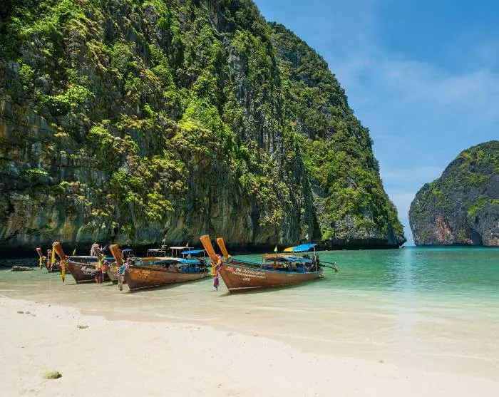 Endnu længere mod øst ligger de paradisiske Phi Phi-øer, som du kan opleve på en heldagsudflugt, hvor der er tid til både at bade, snorkle og slappe af på de kridhvide sandstrande.