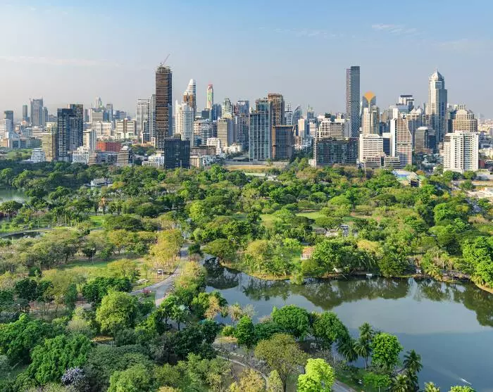 Efter at have vandret Bangkok tynd i den tropiske varme og støjende trafik, vil der sikkert være stunder, hvor du drømmer dig til grønnere og roligere steder. Her kan du passende besøge parkerne Lumpini eller Benjakiti. Du kan også vælge at bevæge dig over på den vestlige side af floden, hvor du kan opleve en helt anden verden uden skyskrabere og dyttende tuktuk’er. Her vil du møde det traditionelle Bangkok og en labyrint af kanaler, hvor huse står på pæle og postbude kommer sejlende.