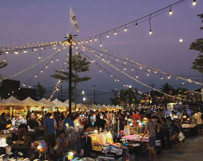 Aftensmaden nydes på det hippe marked, Chillva, der ligger en kort køretur væk. Her kan du smage på markedets lækre, lokale delikatesser, f.eks. saftige satayspyd, grillet hummer, velsmagende sushi og desserten mango sticky rice. Slå dig ned på en plastik-skammel og nyd atmosfæren, der indimellem fuldendes af levende musik.