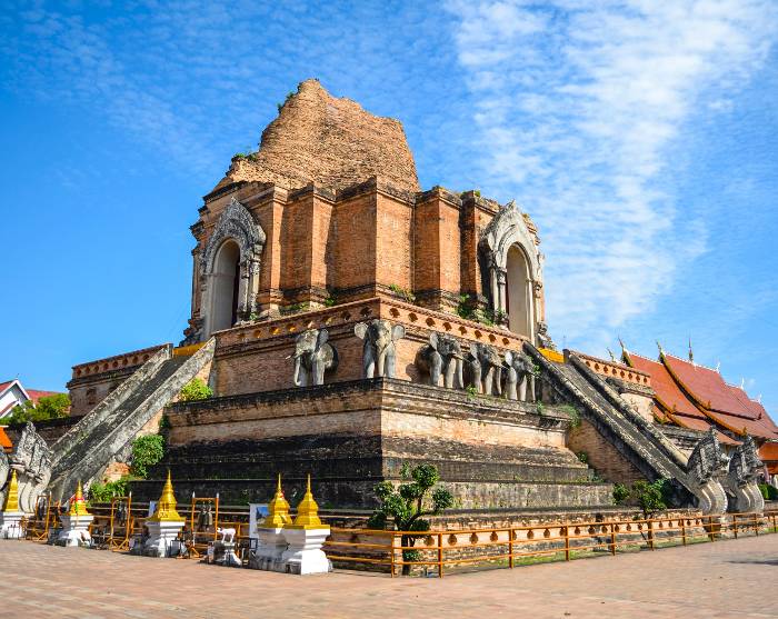 Du bliver kørt til vores samarbejdspartners kontor, hvor du får udleveret cykel og cykelhjelm. Efter en hurtig briefing er det tid til at træde i pedalerne og opleve byens charme. Ruten er nem og flad, så de fleste kan være med. Du cykler gennem Chiang Mais små og stille gader til det fine tempel Wat Inthakhin Sadue Mueang kendt for sin 700 år gamle, hvide Buddha-statue. Cykelturen fortsætter forbi De tre Kongers Monument til byporten, Tha Phae Gate, som var her, at sælgere bragte varer ind i byens storhedstid. Her vil guiden gøre dig klogere på Chiang Mai som tidligere handelscentrum. Du fortsætter til det nærtliggende marked Somphet, hvor du får tid til at snuse lidt rundt og mærke den lokale stemning. Du får også mulighed for at smage på de farverige frugter og søde sager. Herefter venter Chiang Mais ældste tempel, Wat Chiang Man. Det er her, at den 1800 år gamle krystal-Buddha og den 2500 år gamle marmor-Buddha opbevares. Til slut besøger du til byens største og ikoniske monument, Wat Chedi Luang, som engang var hjemsted for Smaragdbuddhaen, men som nu er opbevaret i Wat Phra Kaew- templet i Bangkok.