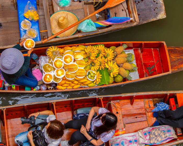 Efter at have vandret Bangkok tynd i den tropiske varme og støjende trafik, vil der sikkert være stunder, hvor du drømmer dig til grønnere og roligere steder. Her kan du passende besøge parkerne Lumpini eller Benjakiti. Du kan også vælge at bevæge dig over på den vestlige side af floden, hvor du vil opleve en helt anden verden uden skyskrabere og dyttende tuktuk’er. Her vil du møde det autentiske Bangkok og en labyrint af kanaler, hvor huse står på pæle og postbude kommer sejlende.