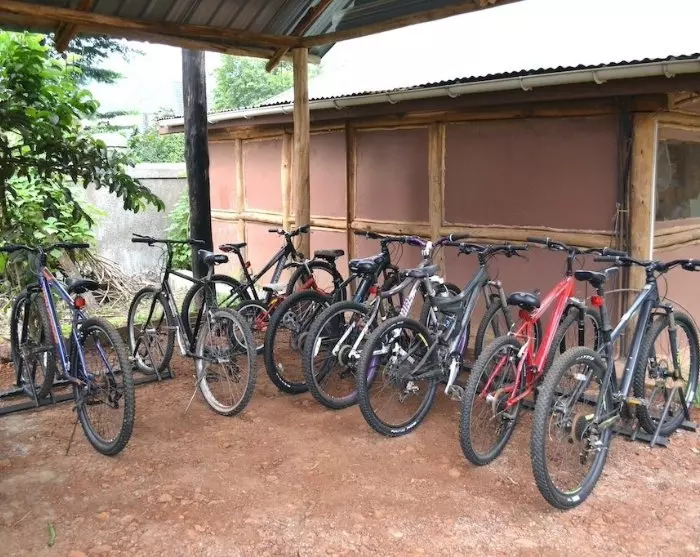 Forude venter en guidet cykeltur gennem landsbyerne i området i selskab med en guide, der kan fortælle om dagligdagen i Uganda. Der er ikke en 100% fastlagt rute, så du kan selv være med til at bestemme farten og hvor turen skal gå hen. Turen tager 2-4 timer, og der er cykler i forskellige størrelser og cykelhjelm til alle. Og bare rolig, cyklerne er i fin stand – det hele startede trods alt med et cykelværksted….