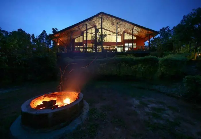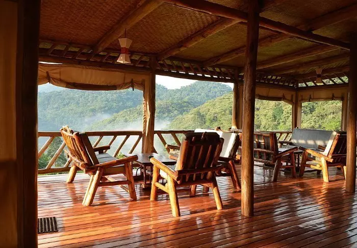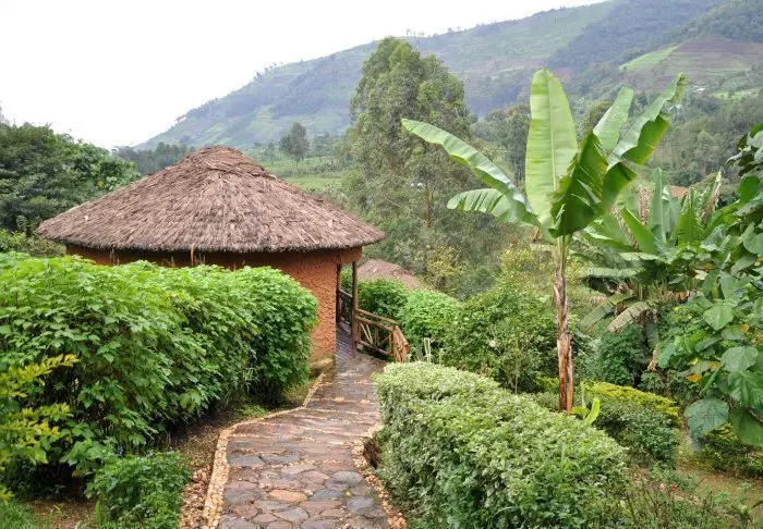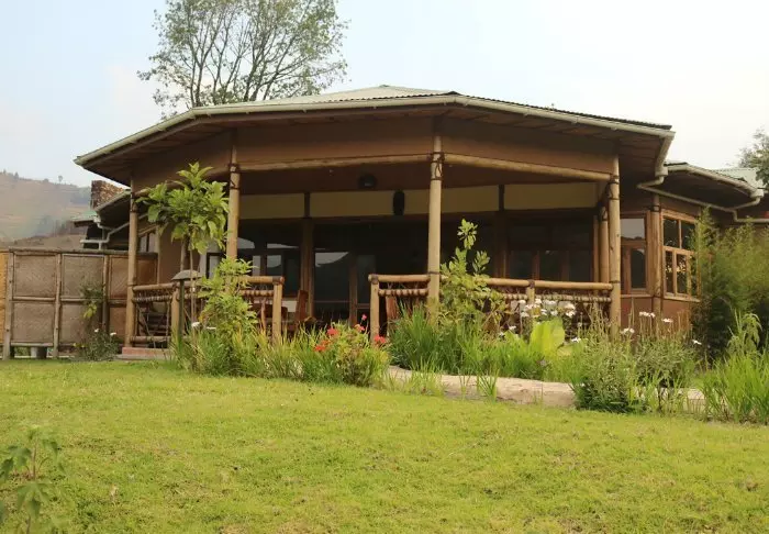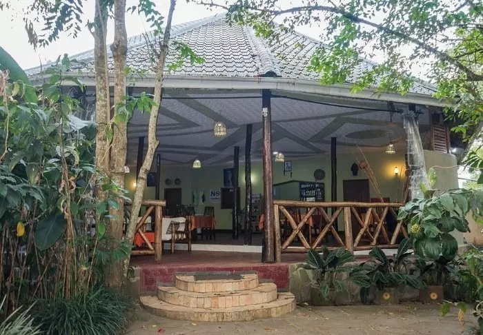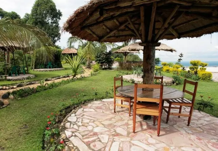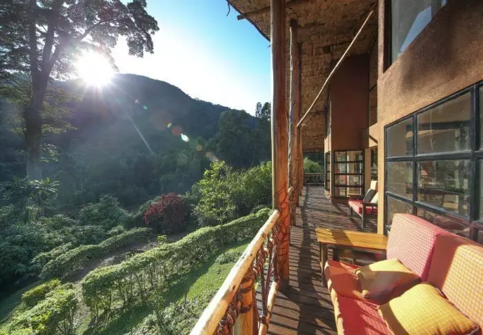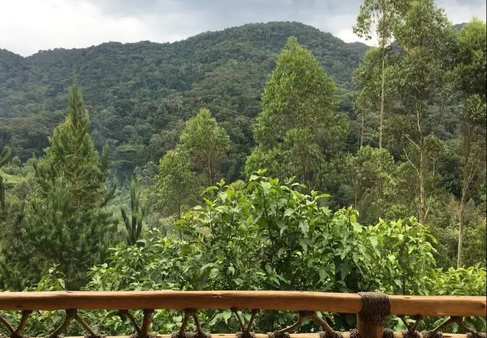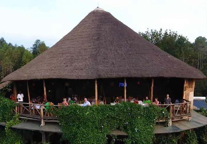 Hovedbygningen med restaurant, bar og loungeområde er placeret på toppen af skråningen og giver dig ikke blot en billedskøn udsigt, men også masser af ren, frisk luft fra skoven og dens mange træer, mens du får dig en bid mad. Fra hovedbygningen går en sti, som fører dig direkte til Rushaga-porten og ind i nationalparken.