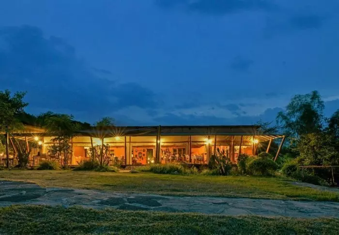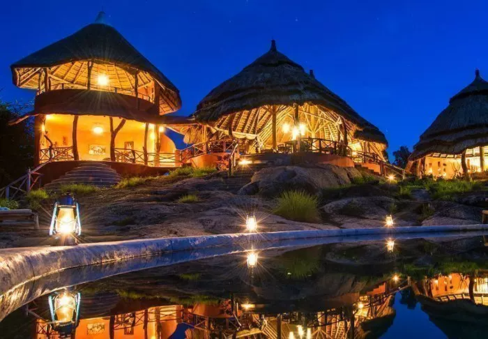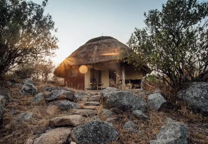 Lodgen består af ”bandas”-hytter, der ligner karakteristiske hytter fra en lille afrikansk landsby. Fra hytterne, der er fordelt på skråningen, og hvoraf en del af dem er opdelt i etager, er der en smuk udsigt ud over sletterne og det traditionelle afrikanske landskab. Hytterne gemmer på 18 moderne værelser indrettet med behagelige senge og privat badeværelse.