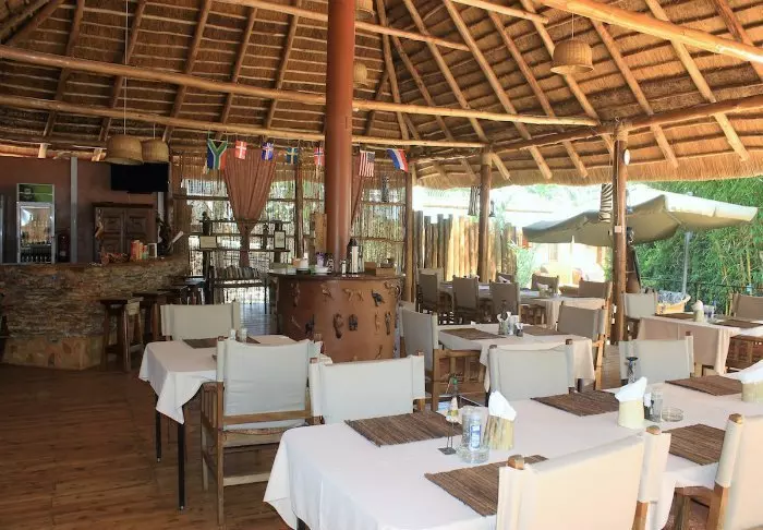 Udsigten fra restauranten tager pusten fra de fleste. Et vandhul tæt ved tiltrækker ofte tørstige dyr ved solnedgangstid, så ofte nydes middagen med udsigt til zebraer og impalaer.