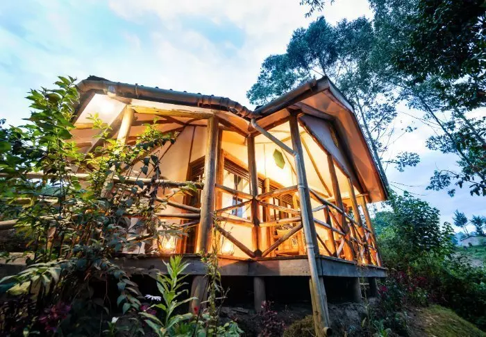 I udkanten af Bwindi Impenetrable Nationalpark, kun 10 minutters gang fra parkens Rushaga-port, ligger den hyggelige Ichumbi Lodge på en frodig bjergside beklædt med prydende planter og træer.