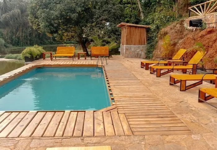 Fra pool-området kan du også suge den storslåede udsigt til dig, mens du flyder i swimmingpoolen eller tager dig en slapper under parasollen på en af solsengene. Ved siden af swimmingpoolen ligger lodgens restaurant, der byder på en bred vifte af autentiske afrikanske retter samt mad fra det internationale køkken. Råvarerne er friske, og der kommer dagligt lokale fiskere med friske fangster fra blandt andet Kazinga-kanalen og Edwardsøen.