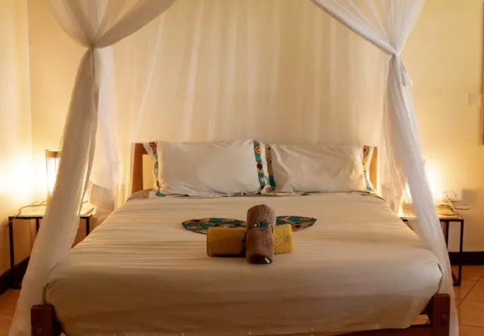 Lodgen består af 12 værelser, som er simpelt men hyggeligt indrettet og med god plads til både dig og din bagage. Alle værelser har eget bad og toilet, og der er myggenet omkring sengene.