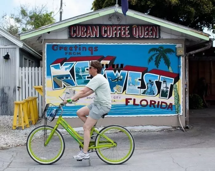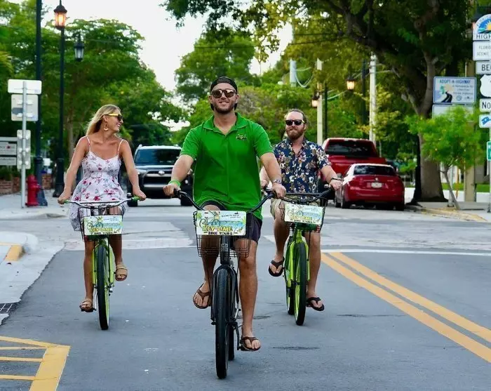 Turen inkluderer: autoriseret lokal guide, cykelleje, hjelm, cykelkurv, 1 flaske vand, 1 stk. Key Lime Pie