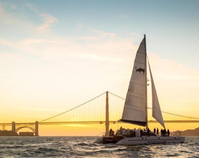 Turen afgår fra Pier 39 ved kolonien af de berømte søløver, hvor besætningen står klar til at hjælpe dig ombord. På ruten passerer du først fængselsøen Alcatraz, der fra 1934-1963 husede nogle af USA’s hårdeste krimelle. Herefter sættes kursen mod den enorme røde mastodont, Golden Gate Bridge, og afhængigt af vind, vejr og tidspunkt kan du være heldige at se den ikoniske bro blive omsluttet af lyset fra en solnedgang. Uanset, så er det en stor oplevelse i sig selv at sejle i den historiske bugt og ikke mindst fornemme broens størrelse på helt tæt hold. På vejen retur kan du glæde dig til et uforglemmeligt udsyn til San Franciscos skyline, hvor lysene funkler smukt op i mørket.
