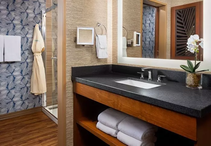 Catamaran Resort & Spa er omsluttet af palmer og store planter og har en tropisk stemning over sig. Dette udtryk går igen på mange af de 310 moderne værelser, der er indrettet med eksotiske print og farver med inspiration fra polynesisk stil. Hvert værelse er udstyret med moderne faciliteter såsom TV, Wi-Fi, værdiboks, mini-køleskab, samt strygejern og strygebræt. Badeværelserne er udstyret med hårtørrer, badekåber og en række af gratis toiletartikler. Værelserne har alle egen balkon eller terrasse, hvor det er skønt at slutte dagen i aftenbrisen fra Stillehavet.