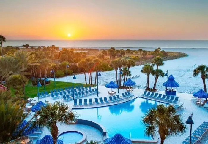 Sheraton Sand Key Resort er en perle beliggende i et afsides, roligt og naturskønt område nord for Clearwater lige ud til den Mexicanske Golf. Resortet tilbyder en uovertruffen placering med direkte adgang til områdets hvide sandstrande omkring Sand Key Park.