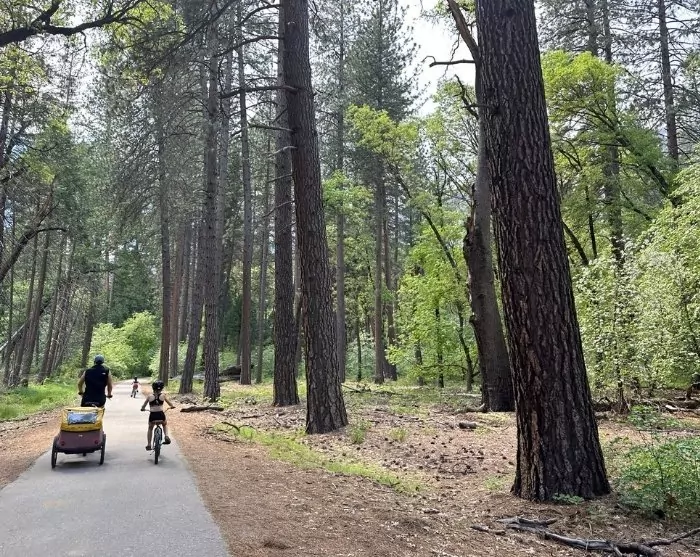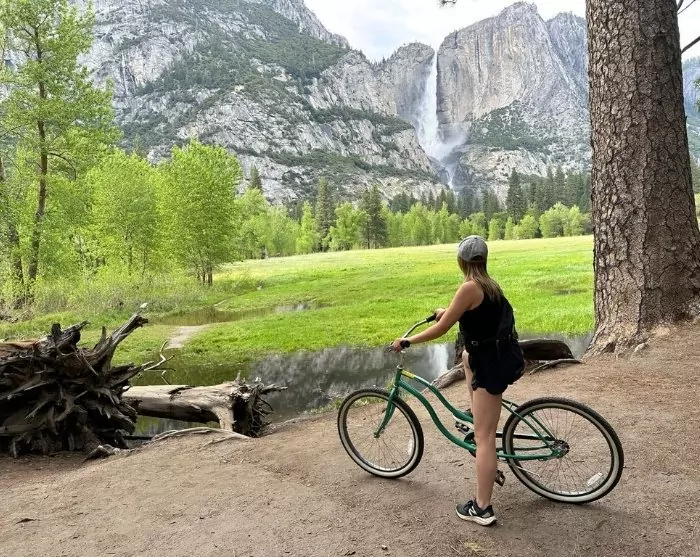 I Yosemite Valley findes desuden mulighed for at leje en cykel, så du kan cykle rundt til de mange fine steder i selve dalen. Et godt sted at nyde en snack er ved det lille sandstykke ved Swinging Bridge Picnic Area, hvor du har kig til Yosemite Falls.