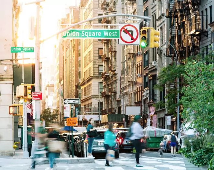 Du forlader Philadelphia fra samme togstation, hvor du ankom*, og blot 1,5 time senere, kan du stige af toget ved Penn Station og befinde dig midt i New Yorks pulserende gader.