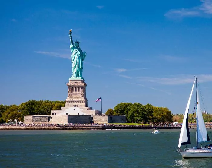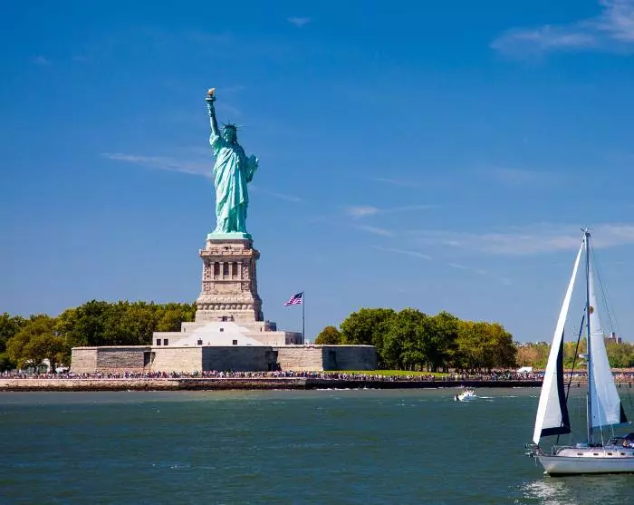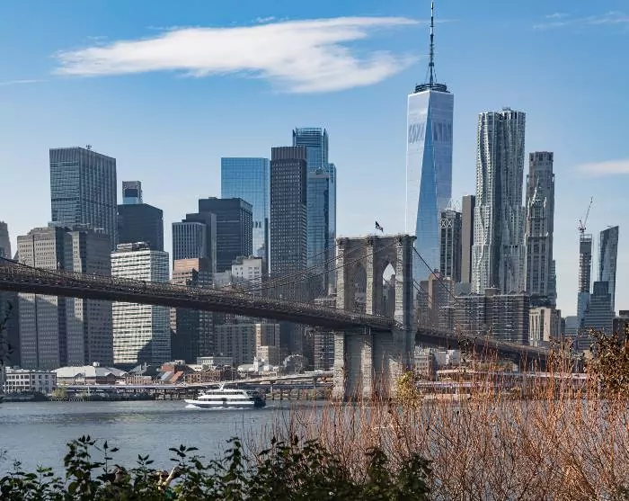 • Guidet sejltur om det sydlige Manhattan med passage forbi Frihedsgudinden, One World Trade Center, samt Brooklyn og Manhattan Bridge