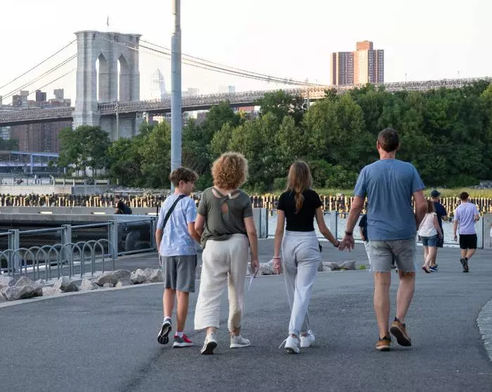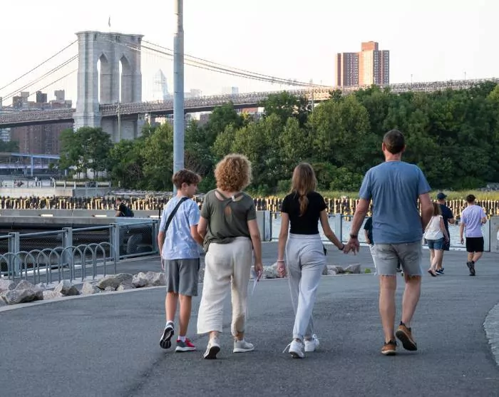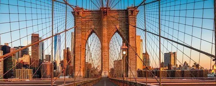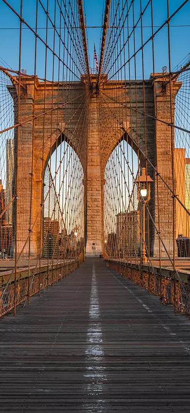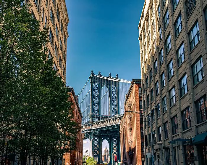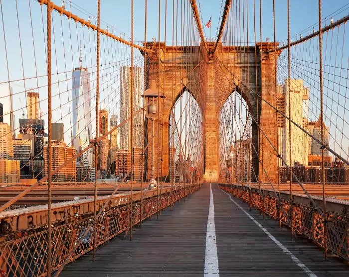 Det kan varmt anbefales at gå eller cykle den smukke tur til bydelen Brooklyn via den berømte kærlighedsbro, Brooklyn Bridge, og evt. vende retur via Manhattan Bridge. På Brooklynsiden kan du nyde en forfriskning med udsigt over byen fra området DUMBO, der ligger mellem de to broer.