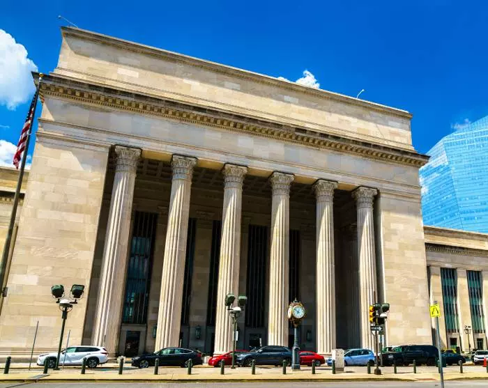 Tag en Uber eller taxa til togstationen i D.C. ved Union Station, der ligger blot et par kilometer fra dit hotel. Sørg for at ankomme i retmæssig tid før afgang – fra Washington D.C. senest 30 min før (detaljer for mødetid, sted og afgang findes på din voucher.) Togturen til Philadelphia tager lige under 2 timer, så læn dig tilbage i sædet og se landskabet passere forbi undervejs.