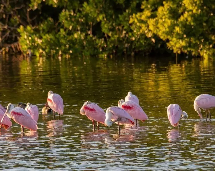 På Sanibel kan du både sejle i kajak i Tarpon Bay, leje cykler og udforske de små bugter. Du kan også finde særlige muslingeskaller på Bowman’s Beach (husk at det ikke er tilladt at tage skallerne med dig). På Sanibel finder du også det berømte naturreservat J.N. ”Ding” Darling National Wildlife Refuge, der er en af USA’s største mangrove-økosystemer. Reservatet huser mere end 245 forskellige fuglearter, heriblandt de smukke lyserøde rosaskestorke, der hvert år tiltrækker mange fugleentusiaster.