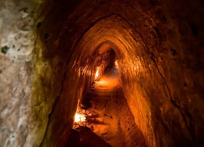 Under Vietnamkrigen byggede de nordvietnamesiske Viet Cong’er en labyrint af tunneller, der forbandt underjordiske kommandocentraler, opholdssteder, hospitaler, skoler samt træningsfaciliteter, og som fungerede som skjulested for nålestiksoperationer mod amerikanerne. Indgangshullerne til tunnelsystemet er meget små, ligesom også selve tunnelsystemet var bygget til meget slanke personer.